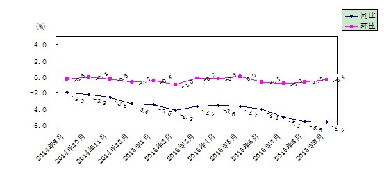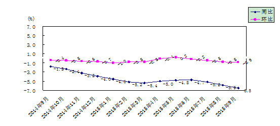 9月份,湖南工业生产者出厂价格同比下降4.3%,环比下降0.3%;工业生产者购进价格同比下降6.5%, 环比下降0.9%。