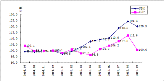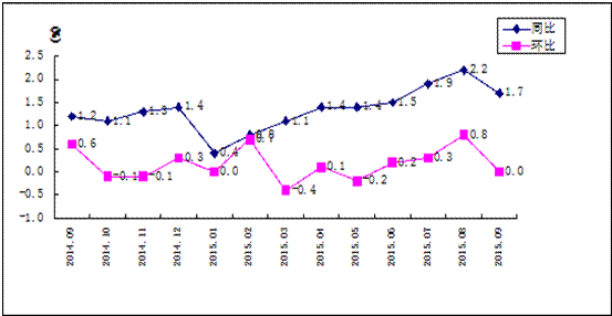 图1湖南居民消费价格同比和环比指数变动趋势(2014.09-2015.09)
