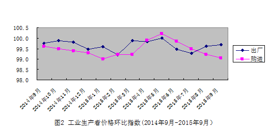 1-4月,工业生产者出厂价格环比指数分别为99.6%、99.2%、99.9%和99.8%,5月持平,6-9月为分别为99.5%、99.3%、99.6%、99.7%,呈现小幅波动态势。其中,生产资料出厂价格环比指数最低点在99.0%,最高点为100%,分别出现在2月和5月份。生活资料出厂环比指数最低在99.8%,最高为100.5%,分别出现在1月和8月份。工业生产者购进价格环比指数波动区间在99.0%—100.2%之间。