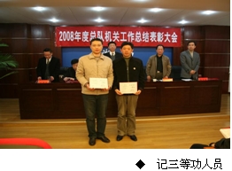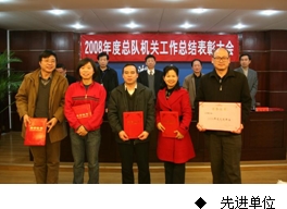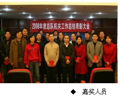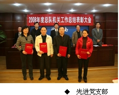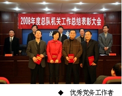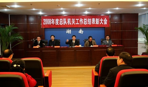 张松青代表总队党组作2008年度工作总结报告,张光友宣读了关于表彰2008年度总队机关先进单位、先进个人的决定;张宏性宣读了总队机关党委关于表彰2008年度先进党支部、优秀共产党员、优秀党务工作者的决定。会上,先进单位和先进个人代表作了发言,总队领导向先进单位和个人颁发了荣誉证书。
