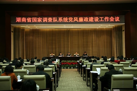 2009年2月20日下午,湖南国家调查队系统党风廉政建设工作会议在长沙召开。会议传达了中央和湖南省委党风廉政建设工作会议精神,总结了2008年度党风廉政建设工作,明确了2008年湖南国家调查队系统党风廉政建设工作重点和任务。总队党组书记、总队长张松青出席并讲话,总队党组成员、纪检组长张宏性作了工作报告,党组成员、副总队长张光友、刘顺国参加了会议。会议由党组成员、副总队长江利国主持,各市、县队队长和总队机关各处室负责人参加了会议。