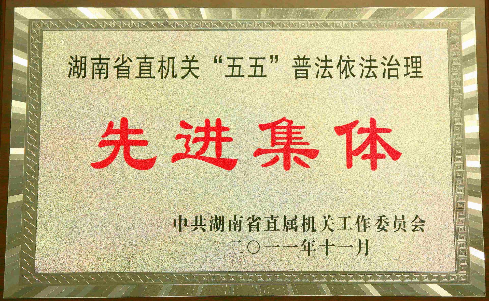 湖南调查总队荣获2011年省直机关“五五”普法先进集体